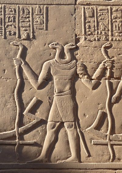 Of course, it’s not just Greek myth that held a special place for snakes. The Mediterranean world was not so separate as we may have at times believed. Scholars like M. L. West in his monumental volume, East Face of Helicon, have shown that many of the early myths and stories from Greece actually find their origin (or at least influence) in the ancient Near East. For example, in Egypt, Atum was a Sun God and eldest of the Heliopolis Ennead, generated himself and regenerated himself every morning in the visage of a Snake and he later turned himself into the form of a snake, which was connected to eternity. Throughout the ancient Near East, serpents, snakes, and dragons are connected to primordial powers that only the gods can control or slay.